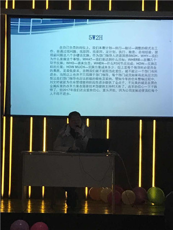 周华经理对销售、生产、采购、售后等各部门工作进行全面剖析并提出针对性意见,并且作为销售部门主管领导提出2017年争取突破性销售额提升!
