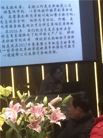 随后,销售部、售后服务部、采购部、生产部、财务部、行政部分别进行了员工代表发言,对2016年工作进行了回顾及经验总结,对于工作不足之处努力协调跟进,各位员工信心满满憧憬2017年!