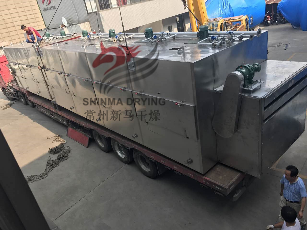 一套三层网带式干燥机装配完毕,即刻启程发货广东冠利海洋生物有限责任公司。